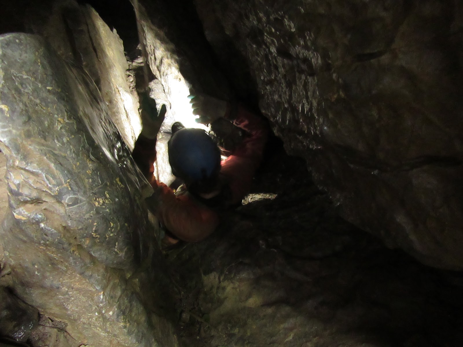 Rond 9u45 waren we klaar om de Bernard af te dalen met zijn vijven (Bram, Piet, Tim, Leonie en ik, de rest was een stevige wandeling gaan maken) om dan een 45 minuten later aan de voet van de number one te staan. Het vaste touw glunderde naar ons en we besloten toch eens naar boven te gaan. Helaas was enkel de eerste put geëquipeerd, de rest is dan voor een volgende keer, dan nemen we wel extra gerief mee. En terug naar buiten, om 11u30 was ik boven en twijfelde of ik al mijn 11 km ging trailen, maar ach, wachten dan maar. Helaas slecht gekozen, het duurde tot 12u45 eer iedereen buiten was.